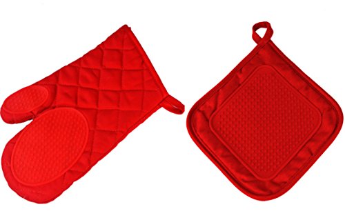 - 2 er Set " HEAT PROTECTION " (= 1 x Backhandschuh und 1 x Topflappen) in ROT / ROUGE - Hitzeabweisendes Set aus Silikon - Backhandschuh und Silkon - Topflappen (Ofenhandschuh / Grillhandschuh / Topfhandschuh) - mit Silikon Baumwolle und POLYESTER - zum KOCHEN BACKEN und GRILLEN geeignet - aus dem KAMACA-SHOP"- zum KOCHEN BACKEN und GRILLEN geeignet