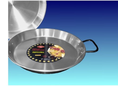 Professional grade carbon steel is extra thick and durable and conducts heat well; Requires a bit of maintenance after washing.;Can be used on a paella burner or a gas or charcoal grill.;Ideal for serving 5 to 8 people.;Informative pamphlet with each pan, which contains two recipes and tips for perfect paella.;Authentic paella pan. Made in Spain.
