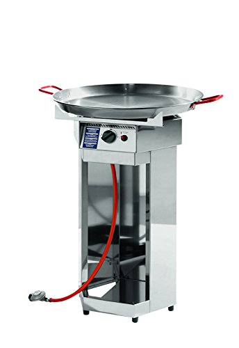 Propan-Gasgrill mit Chromnickelstahl-Gehäuse - 50 mB Druckminderer, mit Paellapfanne, Piezozündung, Thermosicherung, Brennerteil abnehmbar und somit leicht zu reinigen. Inkl. Gasschlauch und Regulator, geeignet für 5- und 11 kg Propan-Gasflaschen